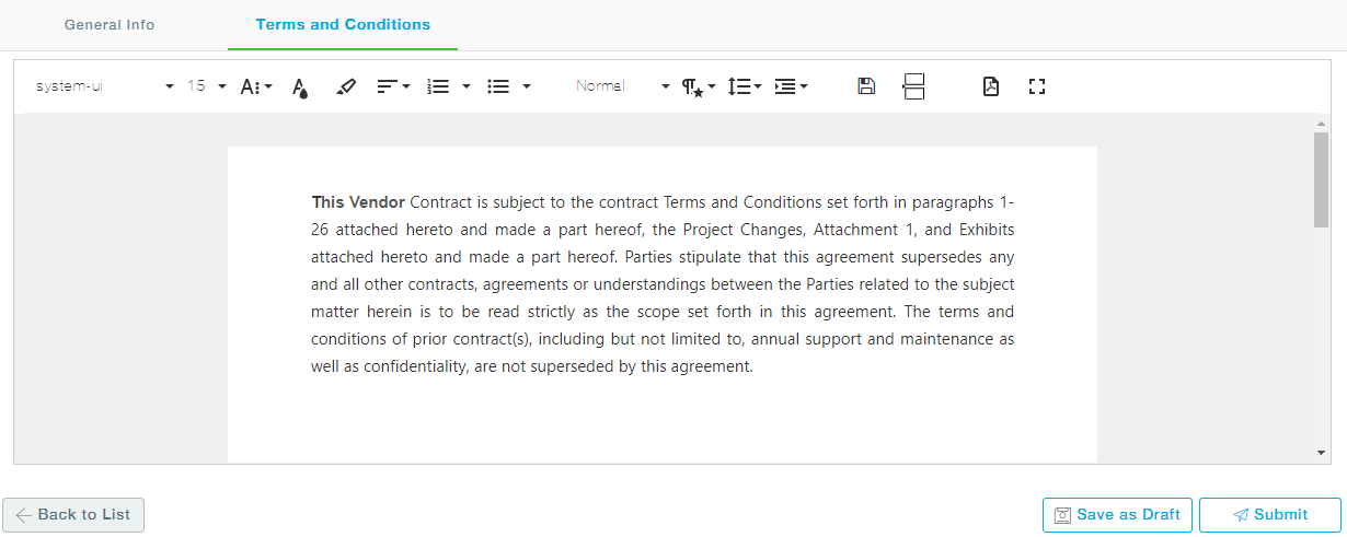 Menu Path: Business Administration >> Contract Terms and Conditions