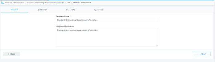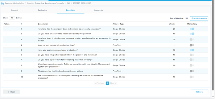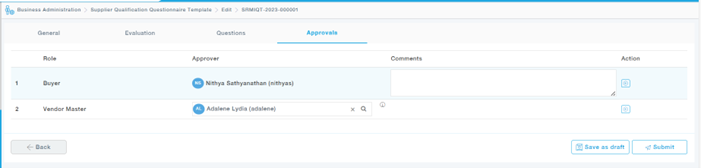 Approval Tab: Once the questions are added, the questionnaire is submitted for approval.