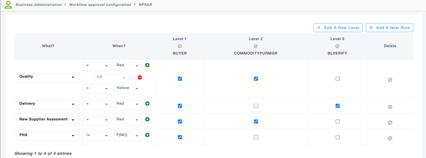 3. Check the Level check boxes to make the level available for approval workflow.