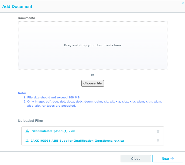 You will see a small pop-up saying the file has been successfully uploaded. You can further click on Choose File to add more documents. You can also delete the documents you have uploaded.