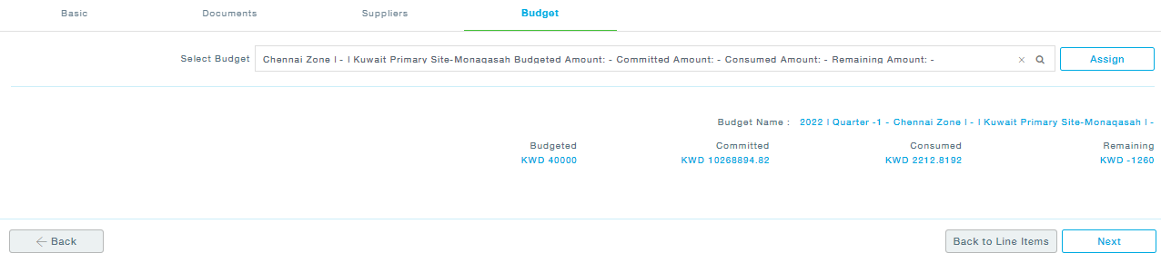 - Budget: Choose the budget and click Assign.