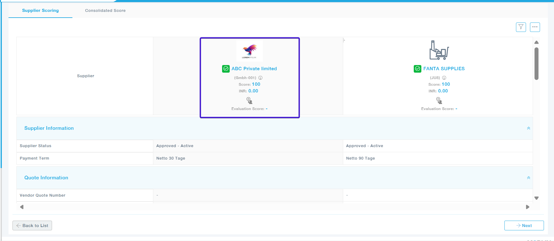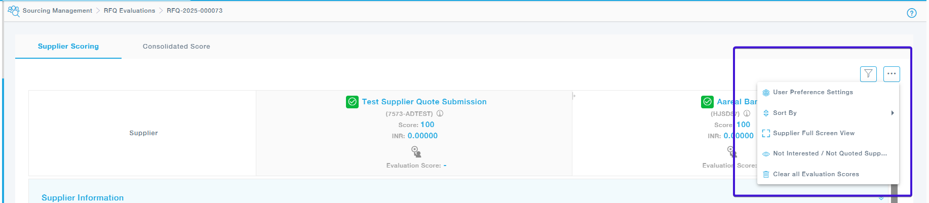 - Supplier full screen view: View the Evaluation screen in full mode for ease of comparison.