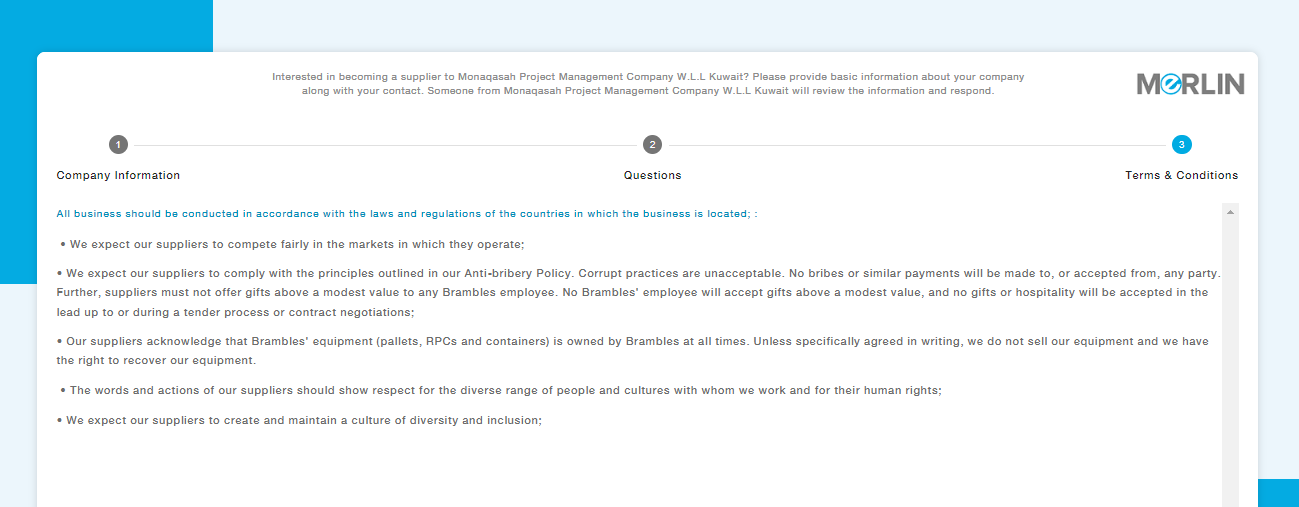Accept the Terms and Conditions and Submit the form to the Buying Organization.