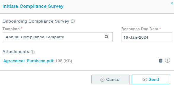 After the supplier responds to the Compliance Survey, the Qualification Questionnaire can be sent to the Supplier. You are provided with the provision to Add Documents along with the Qualification Questionnaire.