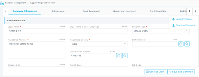 - You can also Download the supplier registration form in the form of an Excel template, fill in the details and upload the Excel to fill the registration form. This allows the buyer to download the form, send it to the supplier, and get it filled out by the supplier itself. This filled template can then be uploaded into MeRLIN.