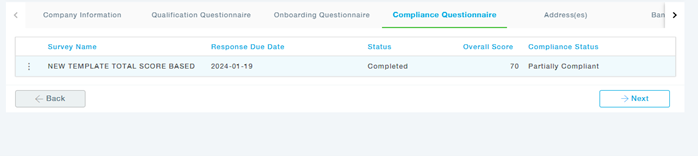The response to the Compliance Survey will be displayed under this tab, including all the attachments and comments provided.
