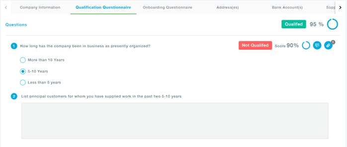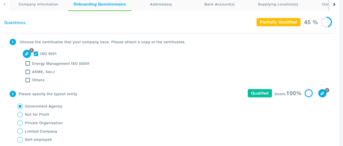 If there are onboarding questions that are the same as the Qualifications questionnaire, the answers provided by the supplier during the qualification questionnaire round will be automatically fetched.