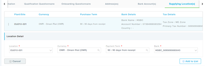 - Once all necessary information is correctly entered, the Supplier needs to click on Submit.