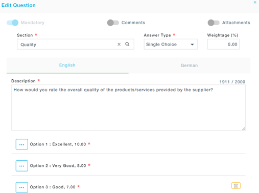 - Optionally, you can make the question mandatory, and require comments or attachments.