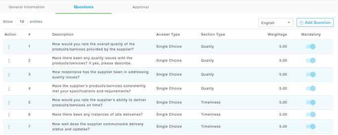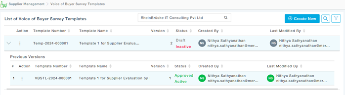 Menu Path: Supplier Management >> Voice of the Buyers Survey Templates