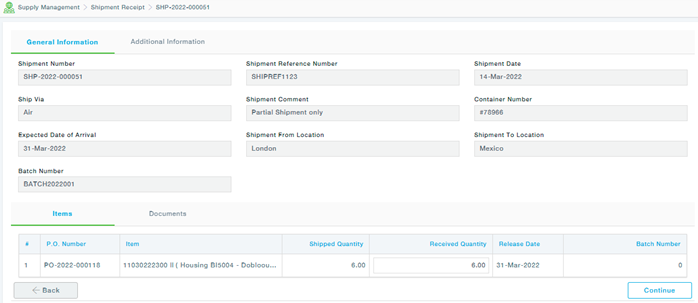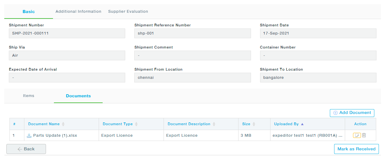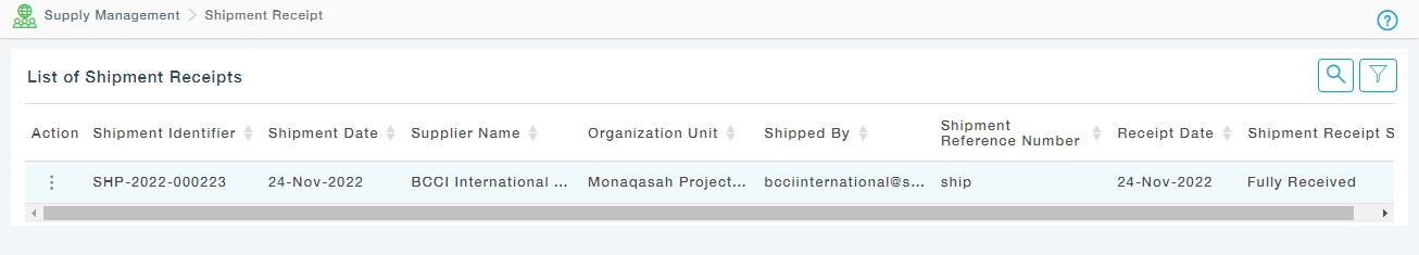 Step 1: Clicking on Shipment Receipt sub-menu will bring up the list of Shipments submitted by the Supplier.